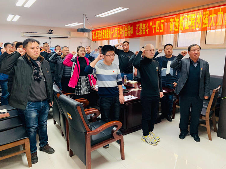 选举工作结束后,支部书记陈庆明为全体党员上了专题党课,带领党员学习宣贯十九届五中全会精神。 最后,在鲜红的党旗下,党员同志们举起右手,握拳宣誓,重温入党誓词。