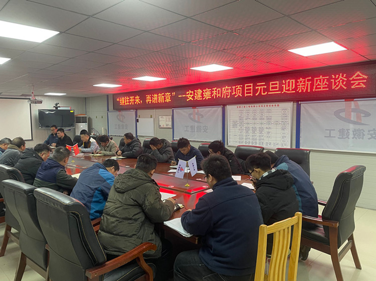 2021年1月1日,四公司阜南安建雍和府项目部组织召开了辞旧迎新座谈会,项目部全体职工欢聚一堂,开心交流,共话工作和生活。