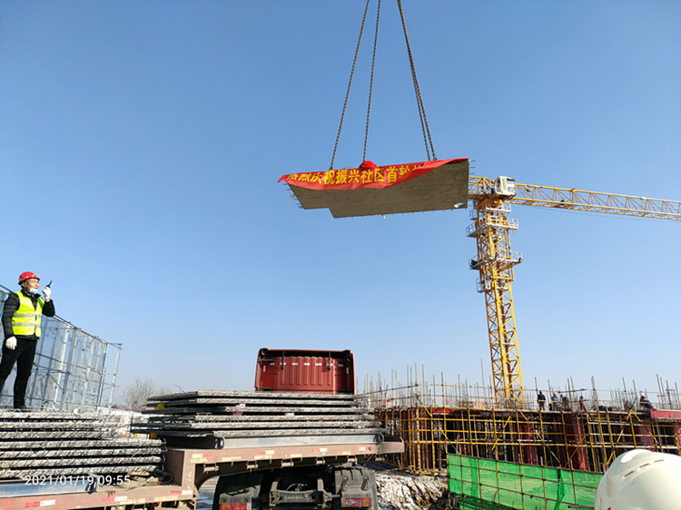 2021年1月18日,随着一块3.2米×2米,重达0.99吨的钢筋混凝土预制构件缓缓吊起,在4#楼一层准确就位,十二公司肥东振兴EPC项目PC构件首吊成功,意味着安徽三建十二公司装配式建筑全面进入实施阶段,在产业化建设上又迈出了新的一步。