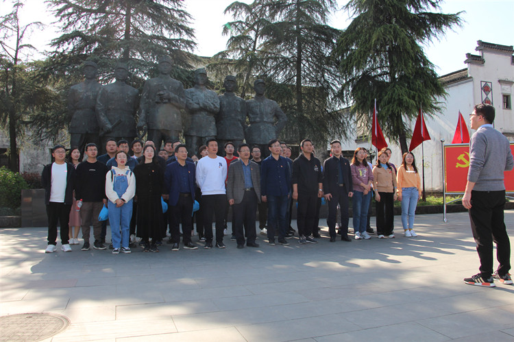参观完以后在新四军军部旧址广场上支部书记冯雷给大家上了一场现场微党课,简要带领大家了解我们党领导人民进行艰苦卓绝的斗争历程,帮助大家弄清楚我们从哪里来、往哪里去。在了解我们党发展历程后,大家怀着激动的心情齐声合唱国歌。