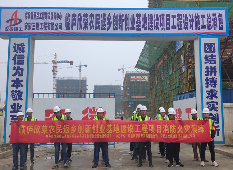 2021年4月15日,在第六个全民国家安全教育日来临之际,为加强项目人员的安全意识,安徽三建八公司临庐欣荣农民返乡创新创业基地建设项目在施工现场组织开展了火灾消防演练活动。临庐管委会规划建设局副局长孙志勇等相关单位负责人参加了此次活动。
