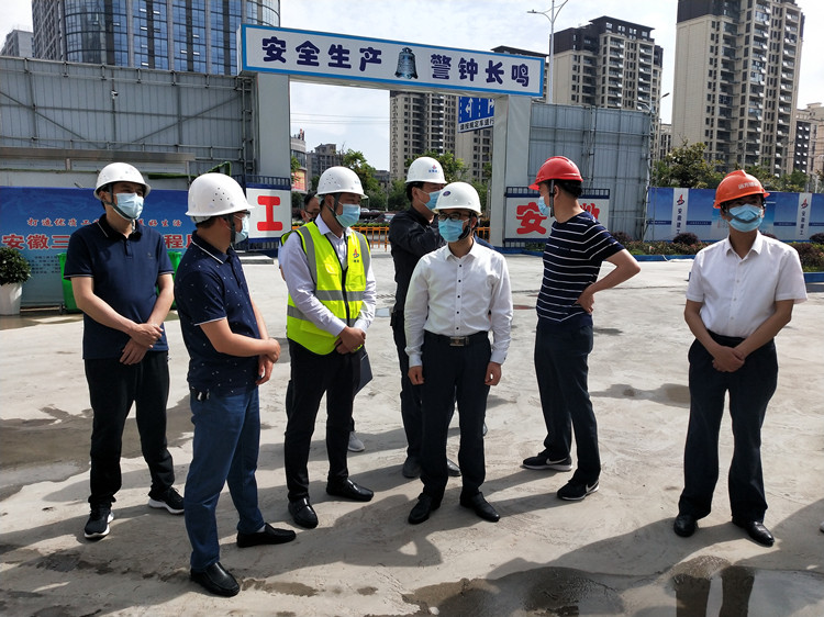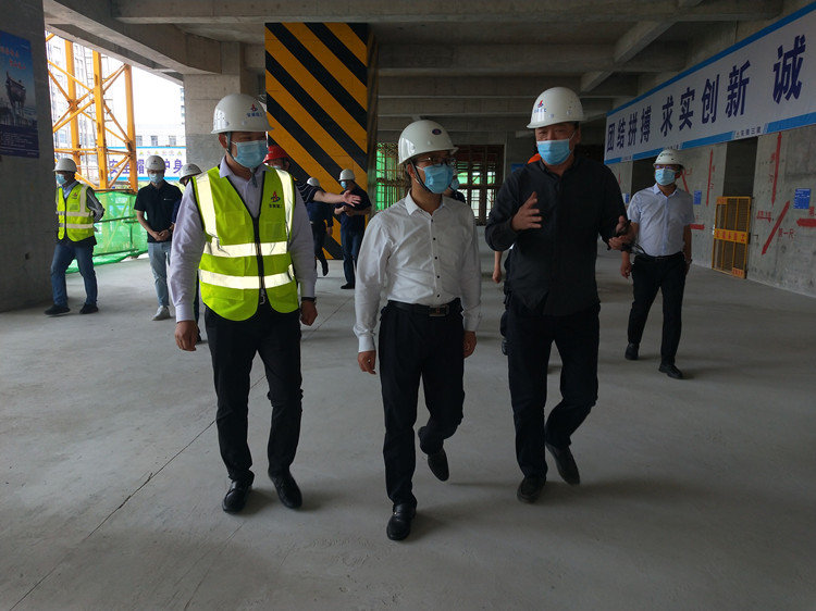 张涧一行深入施工现场,详细询问和查看了项目疫情常态化防控工作情况,实地察看了现场施工进度、安全防护以及项目管理情况。