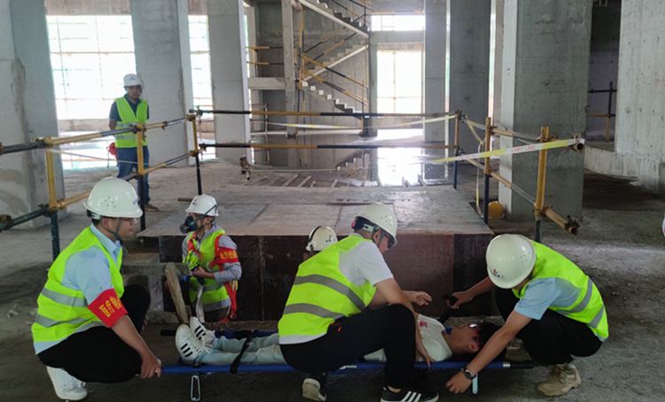 为贯彻落实公司“安全生产月”活动要求,切实提高分公司对有限空间作业安全事故和突发事故应急处置能力,预防、控制中毒窒息等生产安全事故发生,强化作业人员的安全防护意识和自我保护意识,6月21日上午,江西公司在力高凤凰新天项目施工现场开展了有限空间安全事故应急救援演练活动。分公司领导、在建项目管理人员20余人参加了演练。