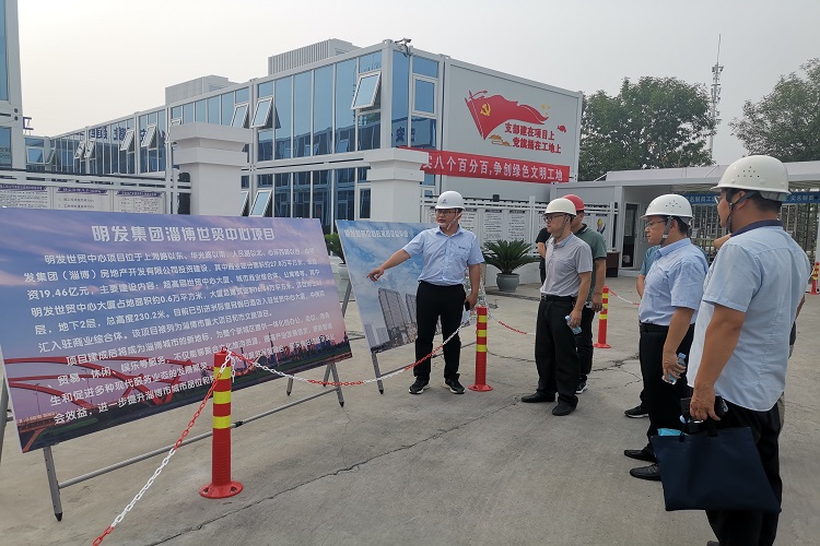 7月8日下午,淄博市建筑工程质量安全环保监督站站长王卫东一行深入安徽三建淄博明发世贸中心项目进行检查指导工作,项目部就生产、安全文明施工等方面的具体做法与措施成效进行现场汇报。