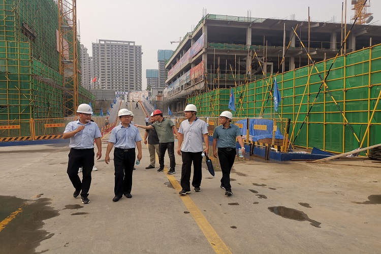王卫东一行先后实地查看了1#楼超高层商业部分和住宅部分施工现场,详细了解安全生产、疫情防控、商品混凝土供应和外来施工人员管控等情况,对在建项目高支模、深基坑、脚手架、起重机械、高处作业等重点环节隐患进行详细参观。在现场看到项目部的自动感应洗车平台、道路自动喷淋系统、扬尘监控系统时,王卫东大力赞扬了项目部对扬尘控制采取的措施。他叮嘱项目部要持续落实好主体责任,采取湿法作业,落实洒水、喷淋等降尘措施,带头齐力共建美丽蓝天。