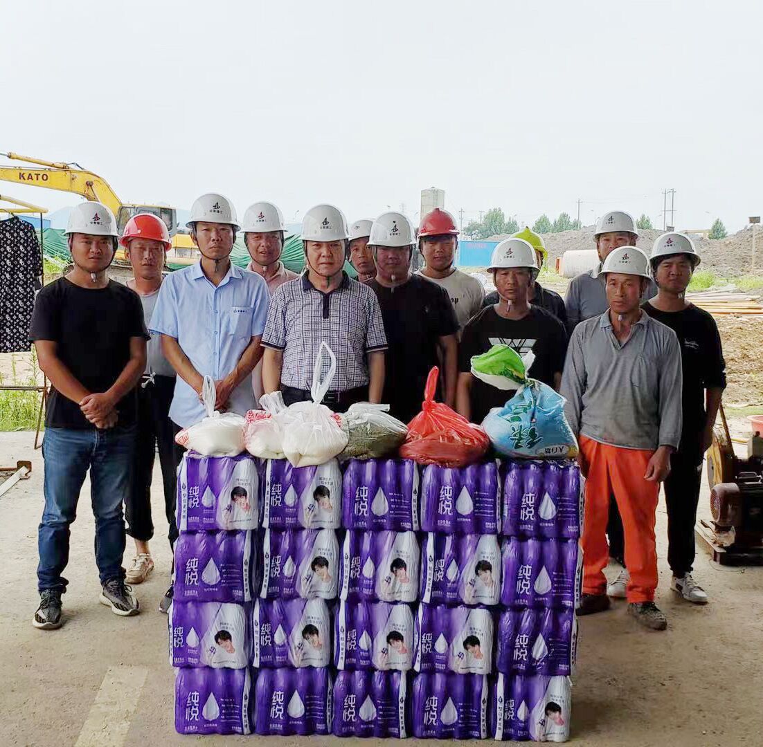 自今年入夏以来,多地高温天气持续不减。为切实保护好职工安全健康,做好夏季防暑降温工作,近日安徽三建水利交通公司及七公司纷纷深入一线开展“送清凉”活动,慰问酷暑中坚守岗位、辛勤劳动的一线员工,为一线职工送去矿泉水、白砂糖、绿豆等防暑降温用品。
