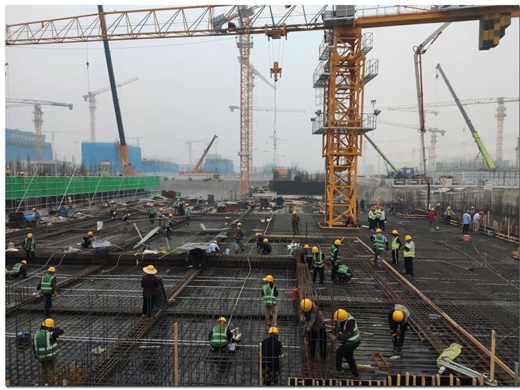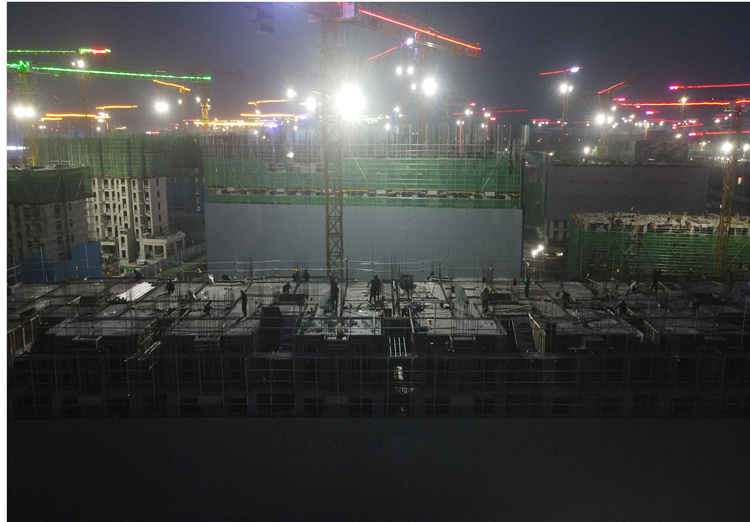 正值大暑,烈日炎炎,但项目管理人员和工人们战高温、斗酷暑,打败一切不利于因素,倒排工期,加班加点,采取“5+2”、“白+黑”24小时倒班作业的抢工模式,有力确保不间断作业。各工区开足马力赶工期、抢进度,大家鼓足干劲、轮班作业、昼夜兼程,所有人都在有条不紊地忙碌着,放线、看仪器、指挥塔吊、绑扎钢筋、支撑模板、浇筑混凝土,全力加快施工生产进程。全体管理人员带领现场工人头顶烈日奋战在施工一线,每一寸裸露在太阳下的皮肤都被晒的通红,汗水从每一个毛孔渗透出来,模糊了双眼,打湿了衣襟,一颗颗晶莹饱满的汗水顺着衣角滴到滚烫的地面;但这都挡不住建设者们的热情,阻不了劳动者们的脚步,他们白天与骄阳为伍,夜晚与星辰相伴,为确保实现八月底主体结构全面封顶的目标,吹响“冲锋集结号”,大干快上。