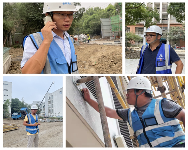 项目建设期间涌现出了一大批坚定信念、尽职尽责、敬业奉献的生动典型。项目经理李国,临危受命,沉着应对,坚定信念,带领团队克服工期紧、困难多、要求高等重重险阻压力,把控全局的同时着眼细节,全力推进项目抢工建设,在一中项目抢工建设过程中发挥主导核心作用。银城旭辉樾溪台项目经理张健,兼顾自身项目收尾工作的同时,树立大局意识,迅速转变身份,担任一中项目实验楼、行政楼及体育馆改造工程区域负责。黄山恒大美丽之冠项目经理年福永,服从调度听指挥,紧盯恒大项目决算对账工作的同时,在一中项目担任生活区及教学区室外道排、绿化及广场、雨污水改造工程区域负责,喊得嗓子都嘶哑了,揣着药就着矿泉水继续坚守岗位。二公司安全科长张立荣,长期蹲点一中项目,干起了项目安全员,“安全为天,项目干的再好,出了安全事故,一切白搭,一中正值抢工快上,现场节奏快,也正是班组工人最麻痹、最困乏、最暴躁、最容易违规操作的时候,一不留意就会存在安全隐患”。他每天马不停蹄地穿梭在现场进行安全巡检,每个犄角旮旯都不发过,为项目抢工建设把好了安全第一关。和他们一样尽职尽责保障项目建设的还有二公司技术质量科长齐蔚、项目施工员唐龙泉、任安晖…… ,在项目上,晚上加班到11点多、每天步走3.5万步、日夜奋战、晒伤依旧坚守岗位、放弃与家人团聚、牺牲休息时间都是常态。