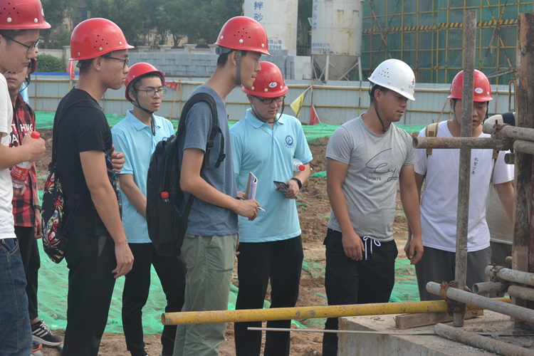一大早,30余位来自西安理工大学土木工程学院大三在读学生在指导老师张昭教授、王松鹤教授、钟丽佳博士的带领下来到了项目部。在会议室,项目经理林通、技术负责人郑国强对安徽三建公司及项目部情况做了具体介绍。随后,在项目部管理人员的带领下,教研组成员分成不同批次的小组,去现场开展教研学习活动。在参观过程中,项目管理人员详细地跟同学们讲解了现场施工标准、施工技术、施工机械等相关知识。对于同学们提出的问题,管理人员均耐心解答,整个过程同学们表现出极大的学习兴趣。项目现场干净整洁、布局有序,使师生们近距离感受到安徽三建的现代建筑理念和绿色文明施工,也展示了公司先进的施工技术管理水平。参观结束后,大家回到会议室,对现场参观进行了心得交流。
