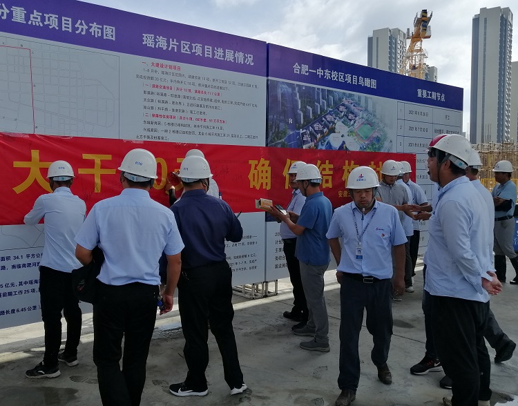 在已竣工的校区南大门前,项目执行经理宋新田鼓励大家:“合肥一中东校区作为合肥市东部新中心启动的首批开工项目和2022年合肥一中120周年校庆主场地,具有十分重要的意义。作为承建单位,我们一定要珍惜这份信任,要在大干快上抢进度的同时坚持贯彻落实质量第一、安全第一的理念,继续发扬江淮铁军作风,掀起抢工高潮,建设好一中东校区项目,为合肥市东部经济发展做出新贡献。”