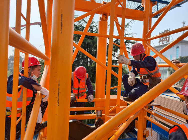 本次培训分为理论讲解和现场实操两部分,建工集团劳模、优秀共产党员吴金国以塔式起重机顶升、加节实际操作、安拆过程中注意安全事项为主线,通过实操深入浅出的分享了在设备租赁公司从事起重机械操作及现场安拆、安全检查等30余年的工作经验,讲解了现场设备实际安装、顶升加节及拆卸过程、调试中需要把握的关键环节和步骤以及在实际安装过程可能存在的安全风险如何防患。