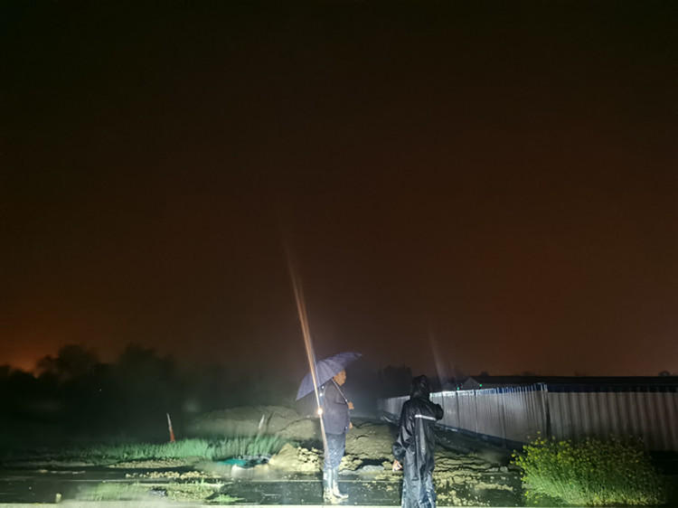 因近日连续强降雨天气留给机械与人员的施工面较差,加之夜间施工,视野较差,给施工增大了难度。水利交通公司副经理魏连成说:“汛情就是命令,防汛就是责任,更是作为新时代建设者应尽义务”。正因为有一群奋勇前行、攻坚克难的新时代建设者,一群群众与企业眼里“最可爱的人”,是他们在防汛一线扛责在肩,筑牢群众的“安全线”。