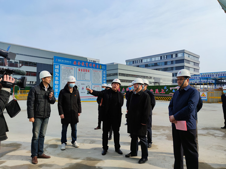 郑永飞一行在工地门口测温登记点驻足,详细查看了当前工地疫情防控的登记资料。在听取了项目负责人关于项目防疫情况汇报后,对项目部当前疫情防控所做工作表示了肯定。随后,郑永飞一行深入施工现场,听取了项目负责人关于工程进度、安全文明生产和项目创建工作等情况汇报。郑主席表示,安徽三建临庐欣荣项目在项目管理工作上做得相当细致,从疫情防控、工程质量、进度、施工及规范管理,文明创建,党建领航等都在区域内起到了标杆引领作用,是区域内各项目学习的榜样,同时也希望项目继续保持优良作风,干好项目,以最优的工程质量向临泉人民交上一份满意的答卷。