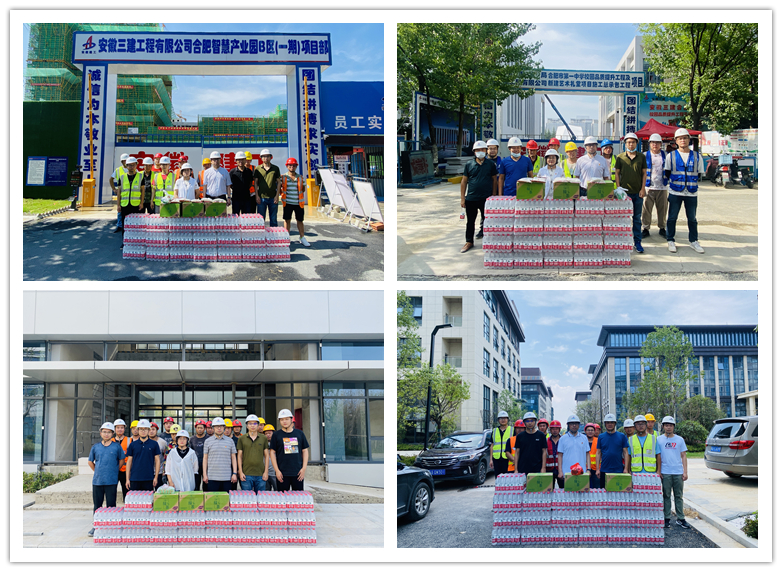 7月12日至15日,党支部书记刘旭峰和分公司副经理杨新华、徐萍、安全科科长万景行先后前往合肥一中瑶海校区项目、合肥智慧产业园项目、合肥一中改造项目、北城医院项目、合肥市中心图书馆项目、工投蜀山慧谷产业园等项目现场,慰问在炎炎夏日仍坚持作业的项目部一线职工,及时为他们送去了防暑降温用品。