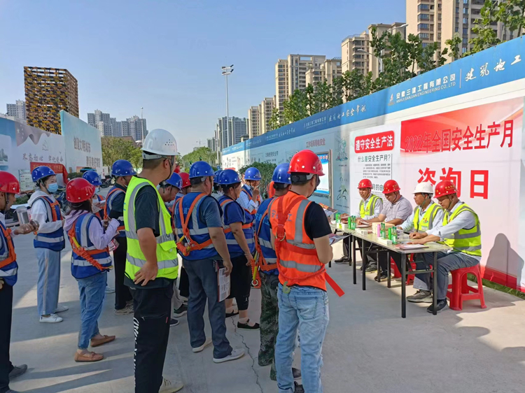 今年6月是第21个全国“安全生产月”,主题是“遵守安全生产法、当好第一责任人”,为进一步加大安全生产宣传,营造安全发展氛围,筑牢安全防线,消除事故隐患。6月16日上午,五公司产城融合示范区文化中心、产城融合示范区五显路、皖投国滨世家二期、三期等6个在建项目均开展了“6·16”安全咨询日活动。