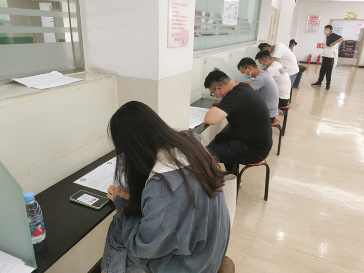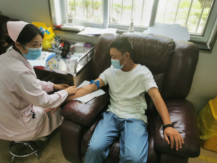 在献血现场,大家在血站工作人员的指引下,认真填写献血登记表,有序进行检查,血液初检合格后,在采血室进行集中采血。