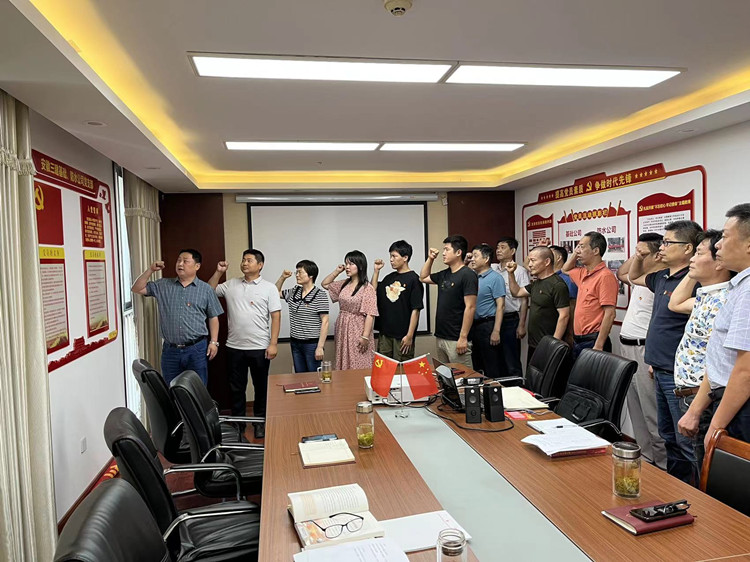 会议首先进行了庄严神圣的新党员入党宣誓;随后全体党员面向党旗、高举右手、重温入党誓词,进一步坚定永远跟党走的决心。
