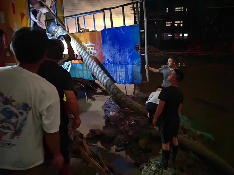 为尽快恢复生产,项目经理汪义善同志第一时间到达现场,立即组织管理人员,找来潜水泵、排水管、编织袋、铁锹等排水工具,进行抢险自救。在这场抢险的过程中,党员、干部身先士卒带头抢险,每一名管理人员也都是好样的,他们24小时轮流值班,有的管理人员衣服湿透,手脚被雨水泡肿,身体多处擦伤等,但他们都顾不上这些,为确保积水迅速排掉,仍然坚持战斗,彰显了安徽三建人吃苦耐劳的精神。经过连续多天日夜奋战,该项目积水已经减少很多,施工现场设备和材料目前没有造成实际损失。
