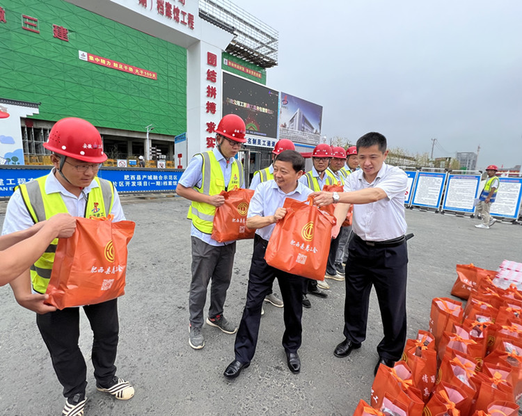 肥西县人大常委会主任成忠一行赴安徽三建肥西产融档案馆项目开展“送清凉”活动