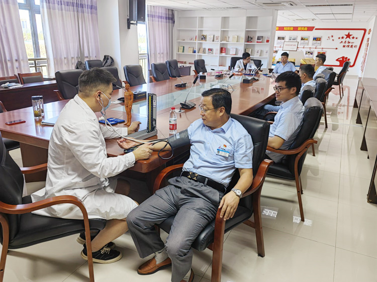88日,本周高温来袭,为落实健康企业建设要求,持续关注广大职工身体健康,提高员工健康养生观念以及对自身健康情况的了解。北城工业公司工会特邀中医学院王磊博士、周成硕士来我司为员工开展为期一周的“亚健康”诊疗活动。帮助职工实现身体健康“早预防、早调理、早康复”。