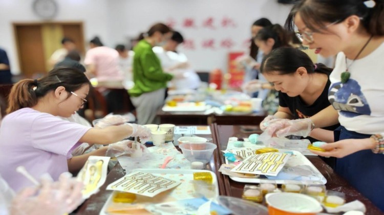 其后进行的制作冰皮月饼环节,现场井然有序且热闹非凡,大家合作完成了从揉制面团到包入馅料,从模具按压成型到包装封口等一系列步骤。有的团馅、有的揉面、有的压模……不一会儿,一个个漂亮的冰皮月饼就跃然成形。尽情体验精心制作带来的乐趣,提前感受中秋团聚的欢愉。