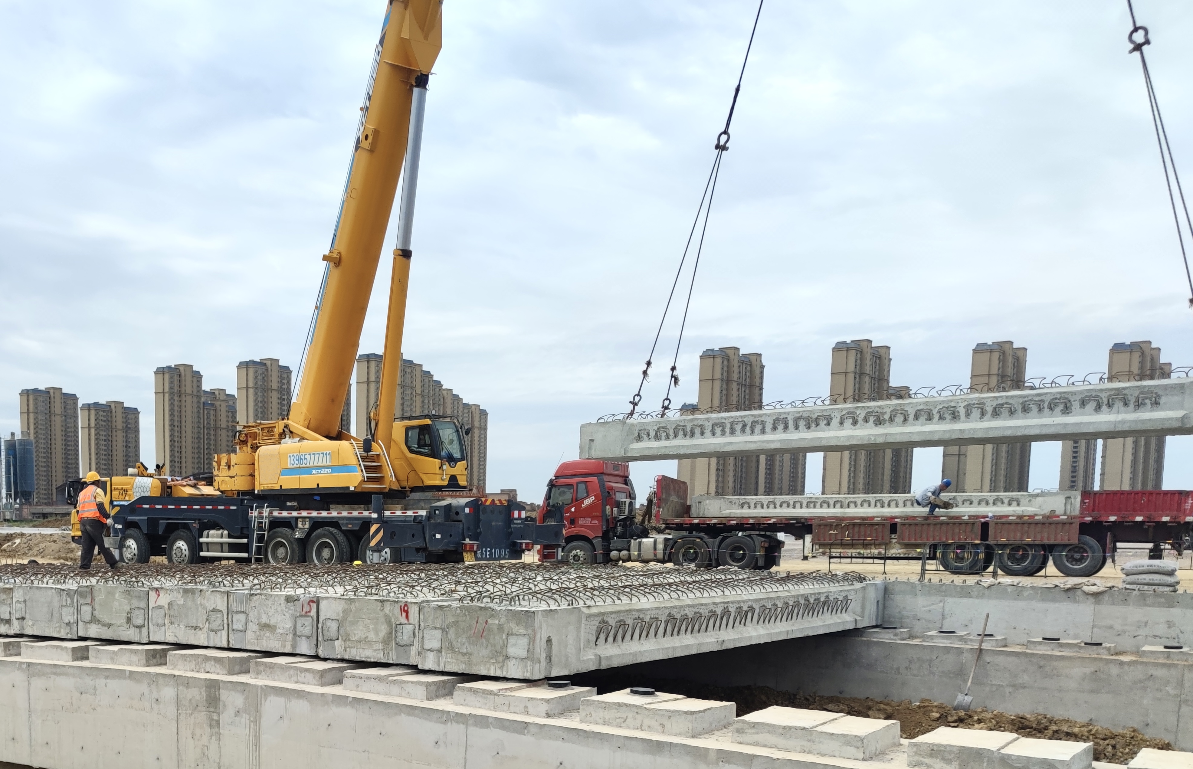 9月28日,随着桃蹊路潜南干渠桥的最后一片梁板吊装完成,标志着肥西产融项目控制性工程四座桥梁下部结构全部施工完成。