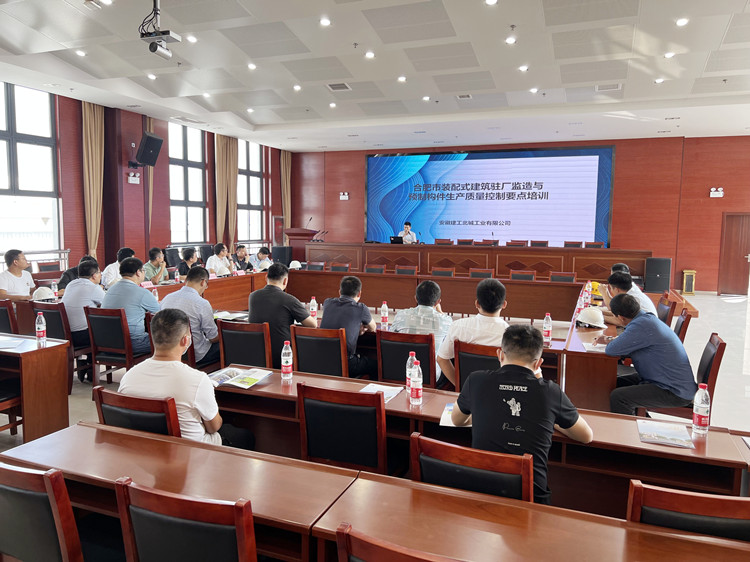 随后在公司五楼会议室开展了“合肥市装配式建筑驻厂监造与预制构件生产质量控制要点”专项培训。北城工业公司技术质量部负责人蒋晓明为参培人员讲解了《合肥市装配式建筑驻厂监造实施指南》要点、驻厂监造配合要点及《合肥市装配式建筑预制构件质量控制要点(一)》等培训内容。