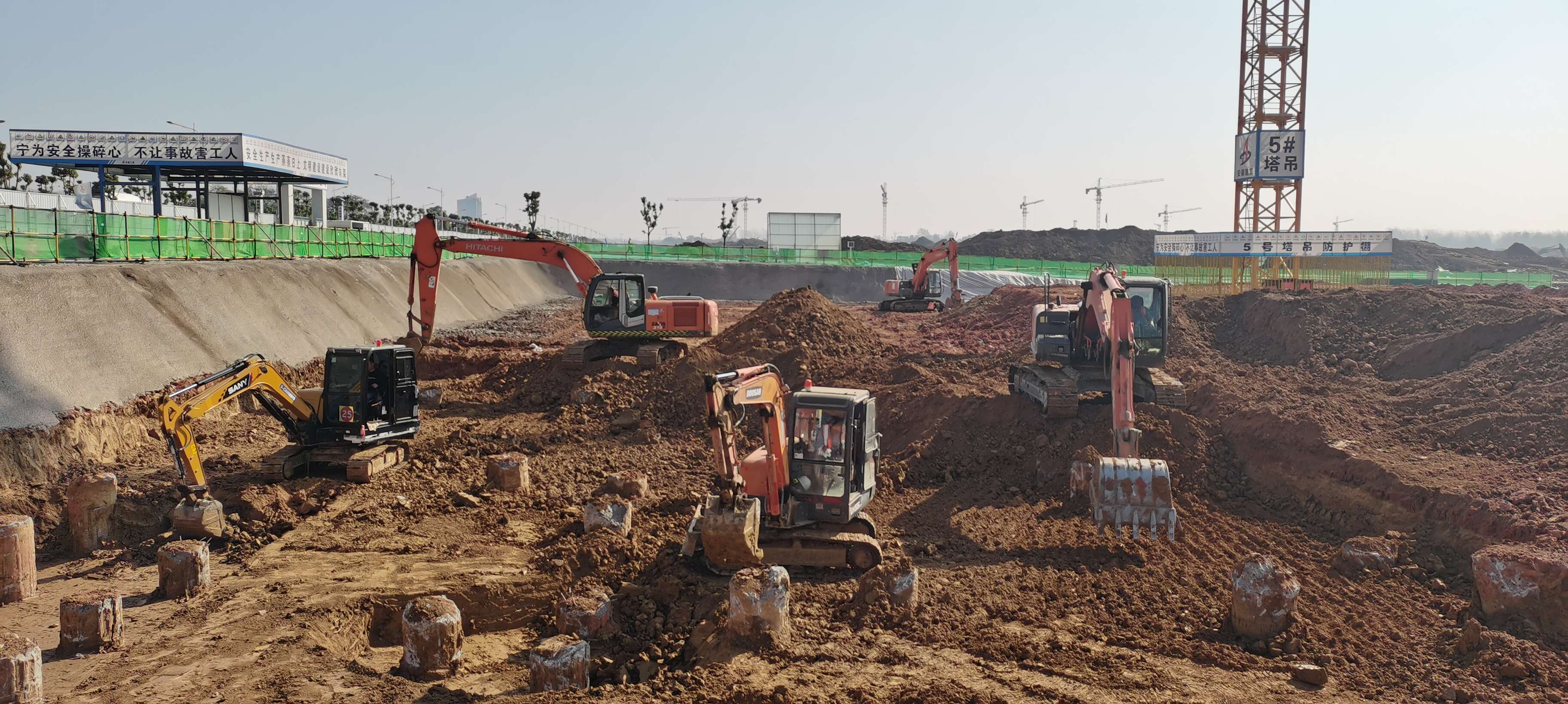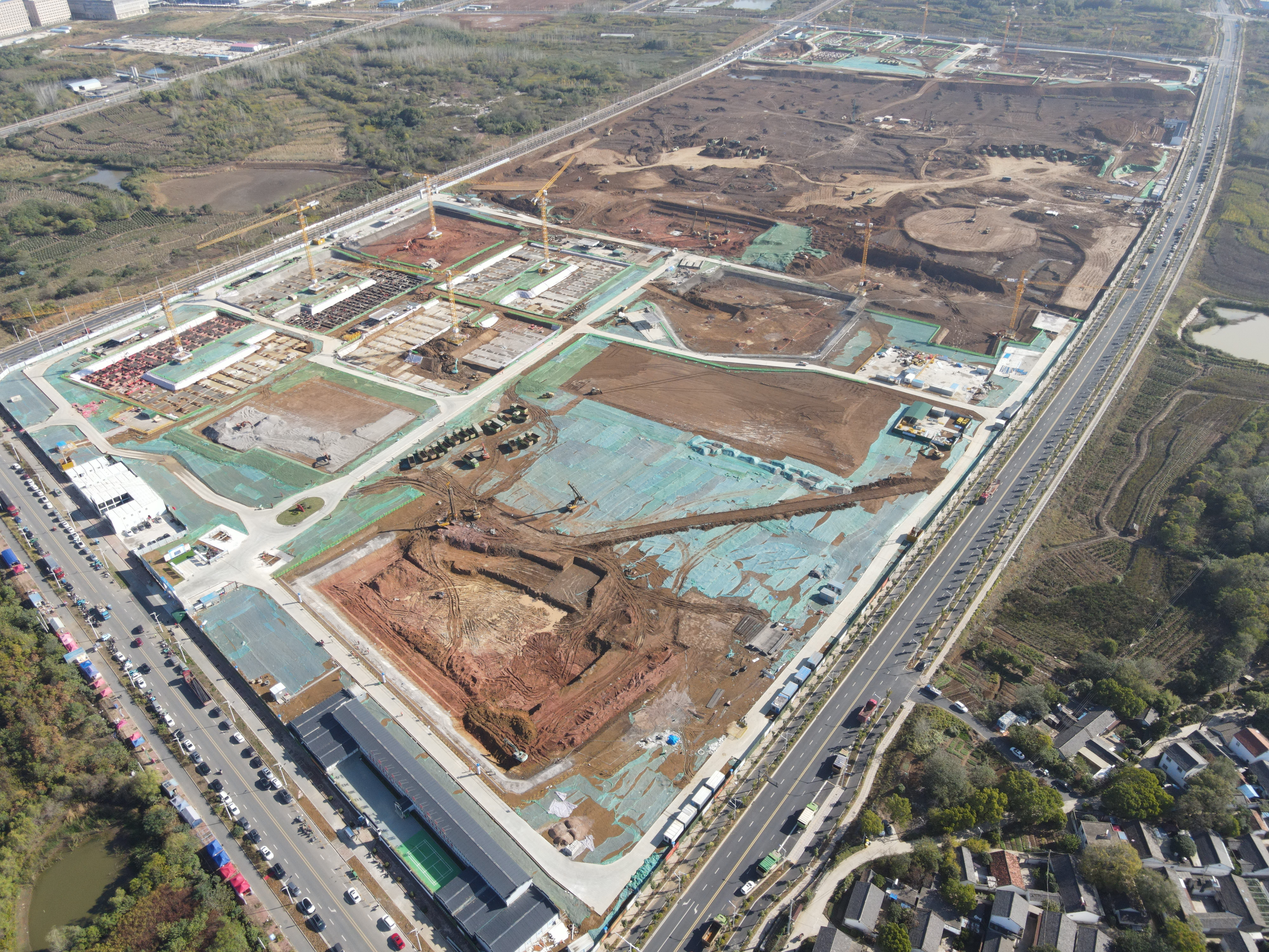 安徽大学江淮学院新校区项目目前正处于桩基和基础施工阶段,项目全体职工严格按照要求做好各项疫情防控工作,合理调配资源,有条不紊推进土方外运、桩基和基础施工,截至目前,已累计完成土方外运约5万方,日劳动力投入约680人。