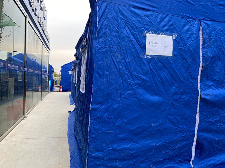 期间,项目加强对务工人员的日常疫情管控,严格落实核酸检测、健康管理、制定应急预案等防疫措施。为保证项目安全生产,在办公区附近搭设10余个帐篷,为一线班组提供临时住所,并为其解决就餐、洗漱等问题。既不耽误一线班组因防疫而造成务工困难,又为项目安全生产提供了强有力的生活保障,在班组中好评不断。