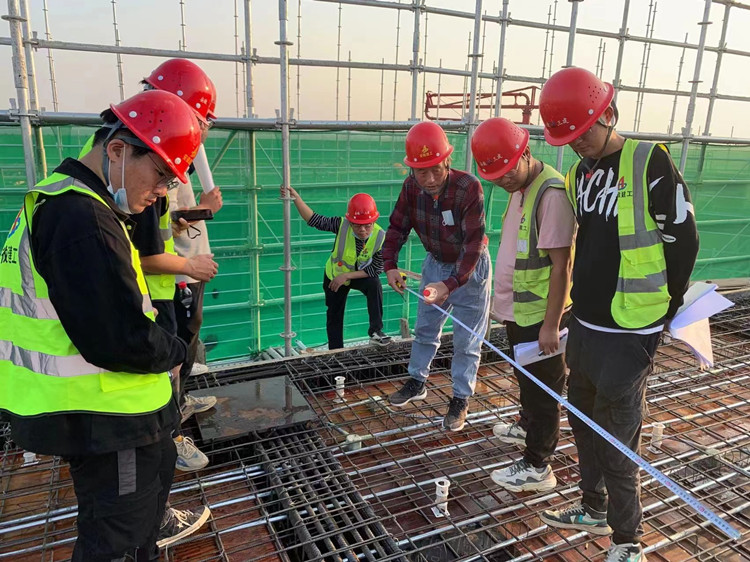 本次培训由五公司技术质量科带队各在建项目技术负责、技术员共计12人来到肥西产城融合示范区文化中心项目的图书馆钢筋工作面,就施工现场钢筋自行检查,对照图纸、规范等找出不懂的地方,现场形成问题清单。卢金兵进入施工现场,带领在场的人员进行了详细的检查,并一一解答了每个同事提出的各种问题,以检查为教学、以现场为案例。
