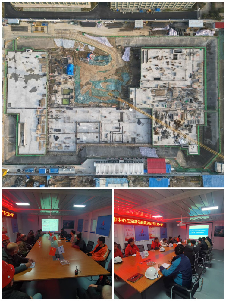 合肥市中心血站新站建设项目为确保在春节后安全、有序、迅速复工复产。项目部管理人员提前到岗并依据《合肥市建筑工地节后复工安全要点》的文件精神。全面开展节后复工安全检查工作。对大型机械进行维修检查和运行调试:对危险性较大的分部分项工程深基坑、模板工程、脚手架等进行排查,严抓施工现场安全风险点,有力有序推动血站项目复产复工。