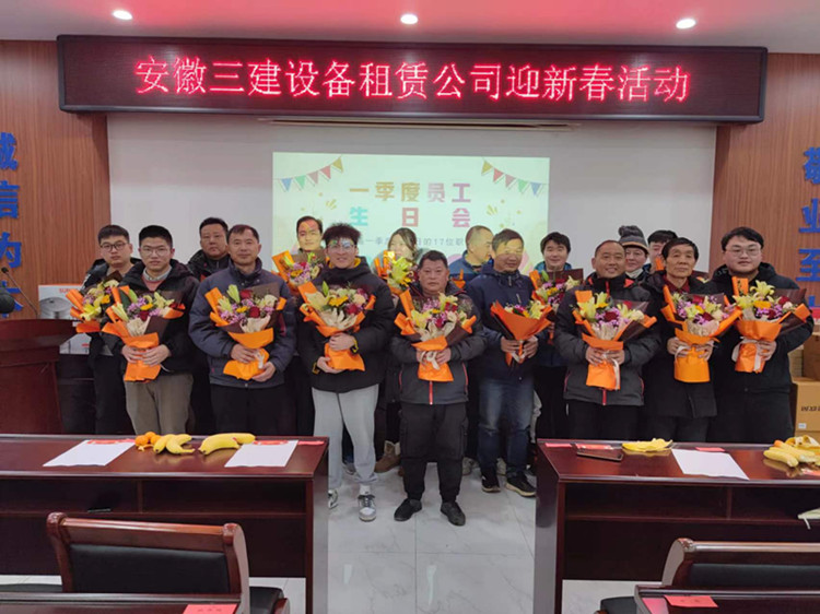 临近年关,喜气洋洋,大家欢聚一堂,共贺新春之喜。在庆新春之喜之余,设备租赁公司还为一季度过生日的员工准备了鲜花和蛋糕卡,为他们共同庆生,在一片欢声笑语之中,大家脸上都洋溢着纯真的笑容,感受着大家庭的温暖。