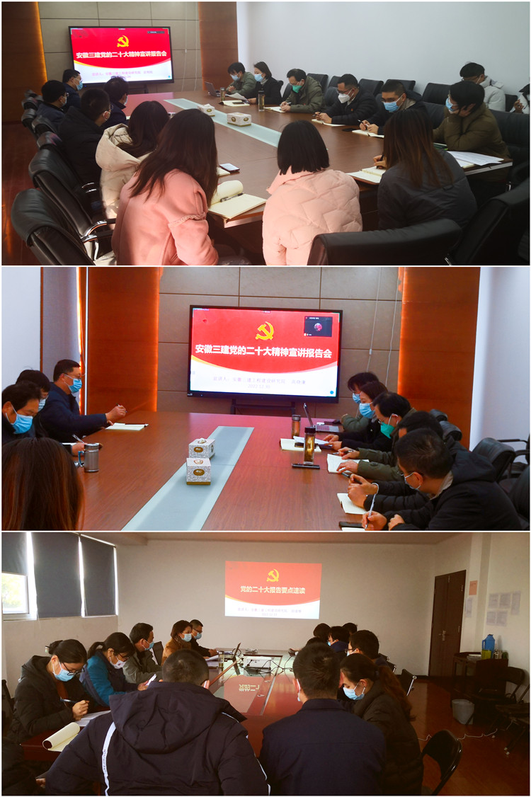 研究院是公司知识分子集中的单位,这次共有两名统战成员代表和一名党员代表进入宣讲团,支部结合研究院两地办公的实际,于2022年12月13日、12月30日和2023年元月4日分别在院会议室、新鑫检测工程有限公司进行了三次“党的二十大精神分众化宣讲”活动。党支部全体党员、入党积极分子及管理人员在主会场参加,同时还采取了腾讯会议的方式让不能到现场的职工群众听取宣讲,实现宣讲的全覆盖。