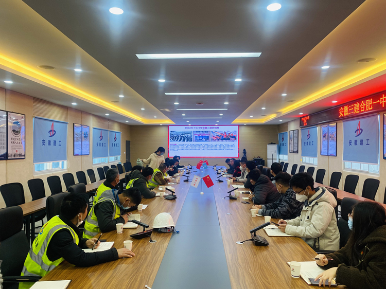 为深入学习宣贯党的二十大精神,推动党的二十大精神在基层一线走深走实,安装公司党支部与十一公司党支部在合肥一中淝河校区项目部开展“党建联建进一线,宣贯党的二十大”宣讲活动,切实把党的二十大精神送到基层一线,激发广大干部职工干事创业热情,建功新时代,奋进新征程。项目部党员干部职工以及各分公司党员共计30余人参加了会议,安装公司党支部书记刘旭峰作宣讲报告。十一公司党支部副书记董专政通过PPT的形式讲解了安徽三建70年企业发展史。