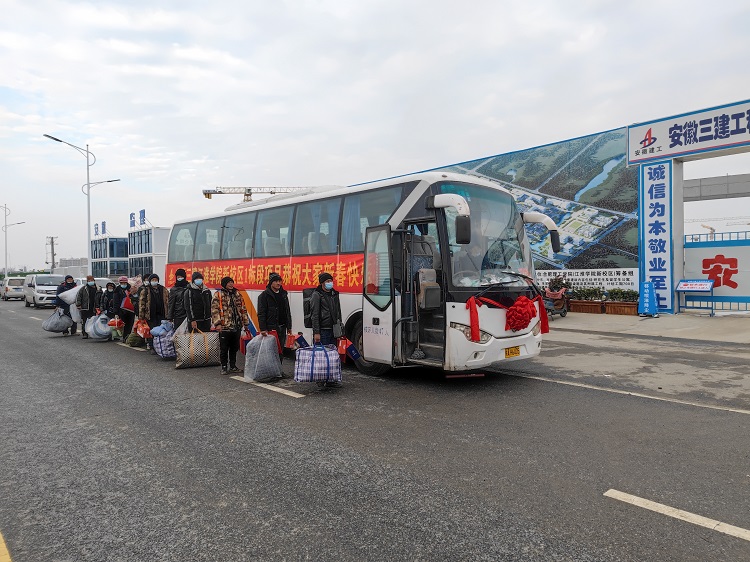 近日,安徽大学江淮学院新校区项目的参建工人们陆陆续续地开始了返乡之旅,期盼着平安回家和亲人团聚新年。考虑到从工地到火车站距离较远以及携带行李不便等问题,项目党支部经研究,决定为工友们提供“爱心专车”服务,免费用专线大巴车送他们前往火车站。通过这种“点对点、一站式”的服务,解决工友们交通不便的问题。