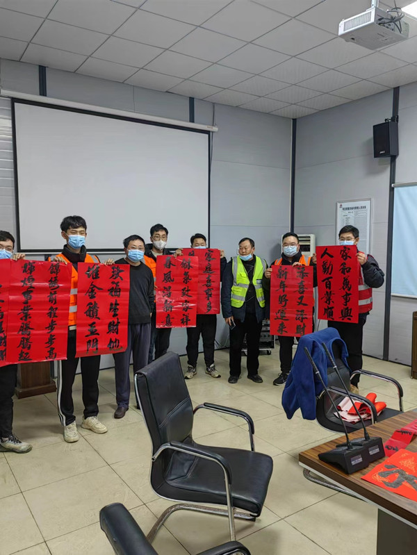 无联不成春,有联春更浓。为丰富职工文化生活,营造欢乐、喜庆、祥和、文明的春节氛围,近日,一公司邦泰新华星耀未来项目以弘扬社会主义价值观、传承中华优秀传统文化为主线,开展了迎新春为项目职工书写春联送祝福活动。