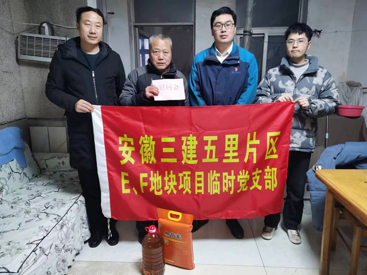 正值新春佳节来临之际,八公司五里片区E、F地块项目临时党支部与汲桥新村社区共同举办了“慰问社区困难群众 满满真情暖人心”活动,庐阳区杏花村街道汲桥新村社区党委书记张凌云、安徽三建五里片区项目负责人陈玉壮及支部党员参加活动。