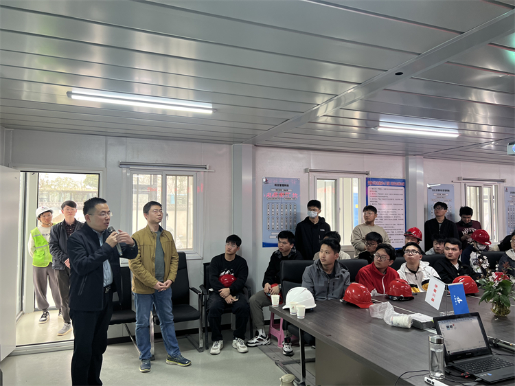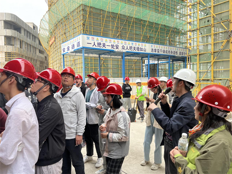 紧接着,项目管理人员带领同学们走进施工现场进行实地了解,为大家讲解项目重难点施工过程和项目亮点,大家切身感受着现场的施工氛围和各岗位间的密切配合,对自己的未来职业规划有了更加明确的认知。之后,项目管理人员与师生开展了友好交流,鼓励同学们好好学习土木工程专业知识,了解建筑工程前沿技术,毕业后努力为祖国基建事业做出贡献!