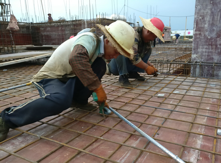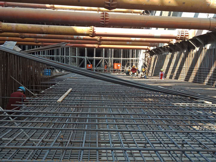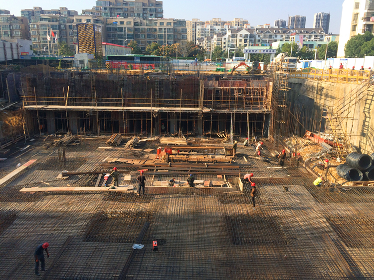 在一公司艺境项目的最后一块地下室顶板上,工人师傅们头戴安全帽,手拿工具,绑扎钢筋、支模板、浇筑混凝土,挥洒激情,全心全意的为项目结构封顶做努力。