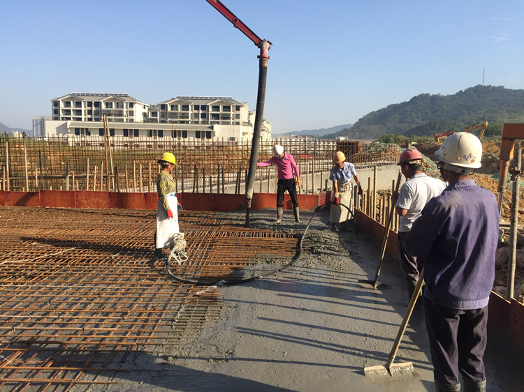 芜湖公司宣城中梁宣督府项目、黄山恒大悦府项目、芜湖奇瑞龙湖湾项目为抓紧国庆期间的有利天气加班赶工。图为黄山恒大悦府项目10月1日浇筑地库筏板。