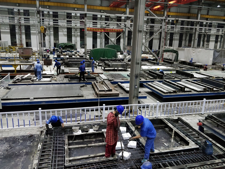 为配合沁园、康利园等项目项目进度要求,工业公司国庆节期间,各生产线活力全开,根据项目现场需求适时调整生产线。图为9月30日深夜降临,还有10分钟就是祖国第六十九个生日,建筑工业公司职工进行墙板生产。