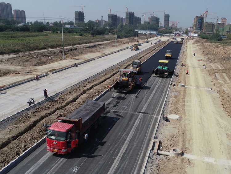 市政公司国庆期间项目生产现场依然火热,阜阳北京西路项目、山东省菏泽市长沙路项目、利辛县长春东路等项目雨水管道安装、检查井砌筑、石方段开挖、沥青摊铺、碎石垫层施工如火如荼。图为利辛县长春东路项目沥青摊铺施工中。
