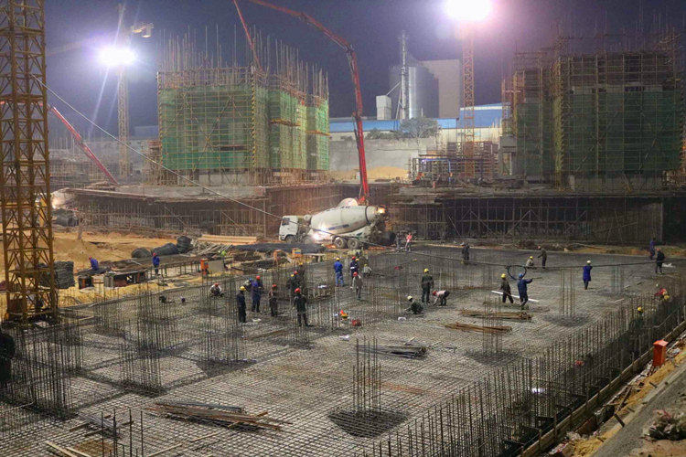 为确保完成任务,在保证安全和质量的前提下,项目部每日召开碰头会让当天的问题不过夜。项目好组织职工晴天抢着干,雨天巧着干,晚上挑灯干,节假日加班干,做到项项工作有人抓,人人肩上有指标,进一步保证了工程按期推进。