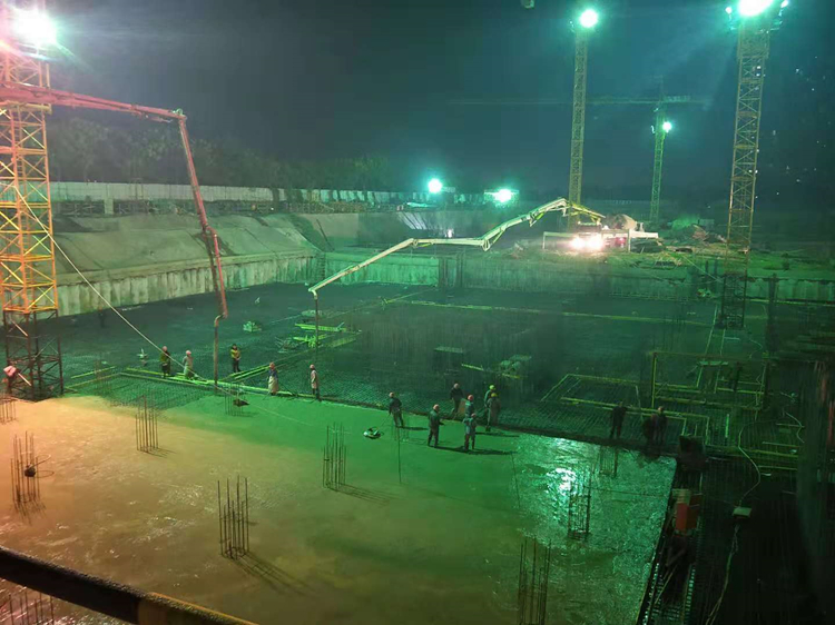 为全面保障项目抢工顺利实施,项目部采取优选班组、优化施工组织、优化工作面等多方面措施。为了保障夜间施工顺利进行,项目部实施夜间值班制度并多次协调环保部门,在保障不扰民的情况下日夜施工。就这样,项目部白天安排扎钢筋,支模版,晚上浇筑砼,24小时交叉作业。