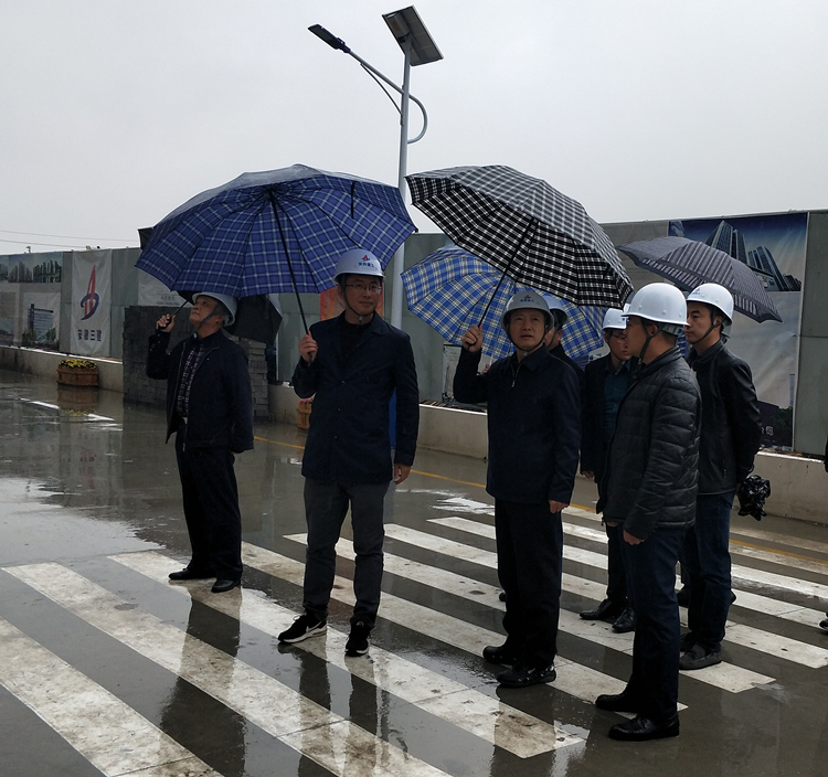 赵时运一行首先深入到施工现场一线,详细了解了项目整体规划、工期计划、建设目标等情况,并对目前已竣工的工程部分进行验看。赵时运在现场肯定了泰州明发项目“一令、二状、三管控”的规范管理。在经过集团公司企业简介展示墙的时候,他要求广大项目职工要秉承“诚信为本,敬业至上”的企业核心价值观,对每一项工作负责,对广大业主负责。