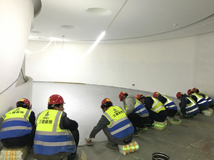 要打破常规工期,就要非常规的手段。项目部大胆创新,采取打破常规工序,极大地调动了各专业的主动性和积极性。根据常规做法,顶棚吊顶及安装作业完成后才能施工地砖、墙砖等湿作业。项目部打破常规,组织近百人突击进行墙砖、地砖铺贴,通过石膏板和木工板的强化防护,再开展吊顶作业和机电安装等作业正常进行,争取了时间。
