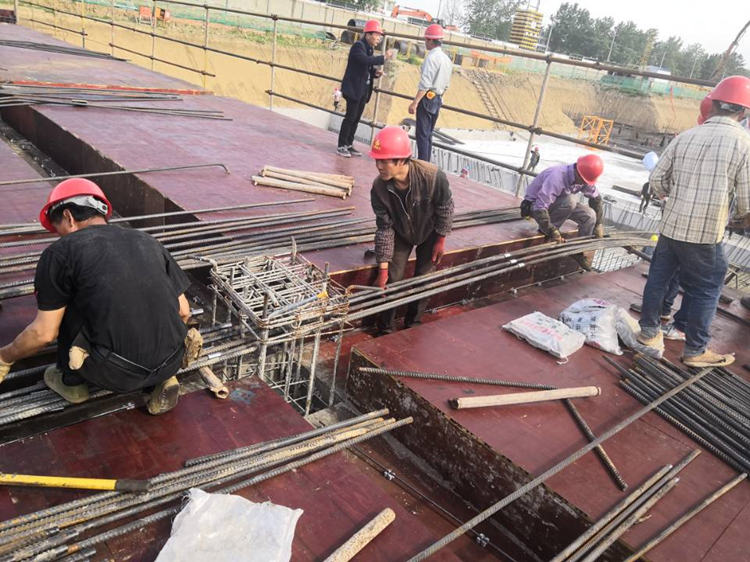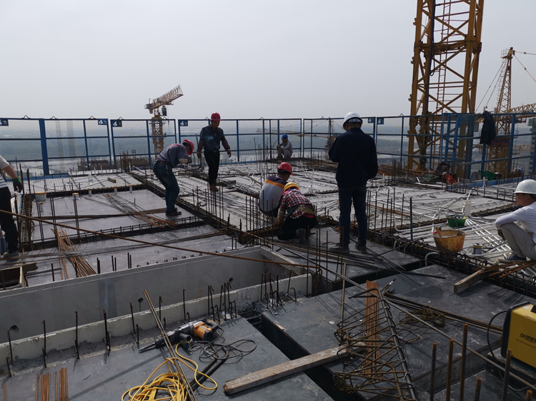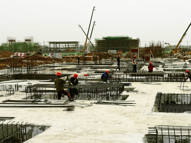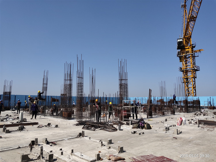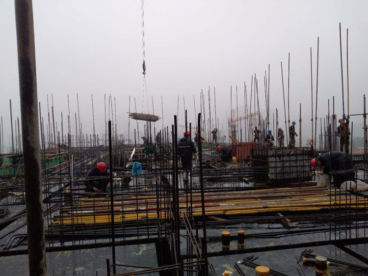 5月2日,十一公司天长恒大I标项目班组绑扎基础承台钢筋。