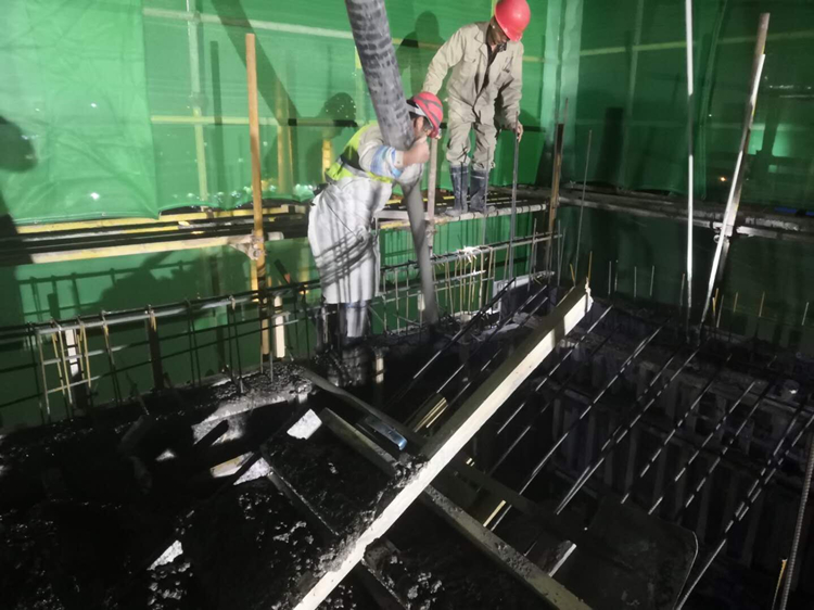七公司天长恒大湖山半岛三标段项目、中海江北G06地块一标段两项目:五一期间,约400位一线职工集体加班抢进度,浇筑混凝土、绑扎钢筋,浇筑防水保护层。