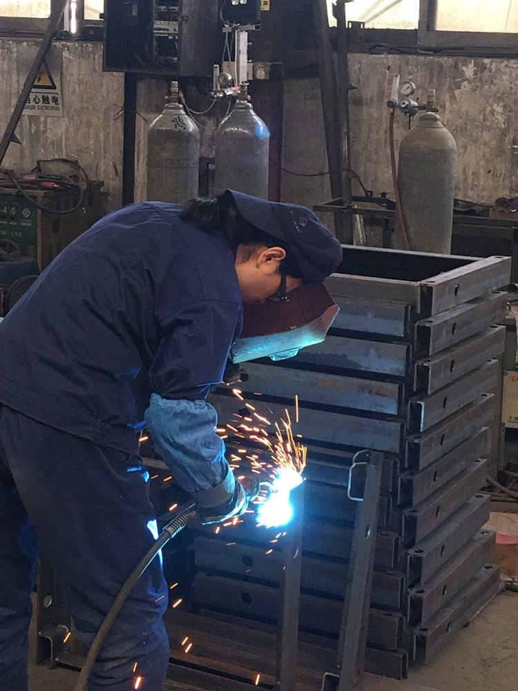 在土建项目火热大干的时候,设备租赁公司、工业公司、轻钢龙骨公司生产车间五一期间也是紧张忙碌、正常生产,为各项目建设做好基本保障。上图为建筑工业公司生产车间生正常作业,下图为轻钢龙骨厂车间职工正在进行焊接作业。