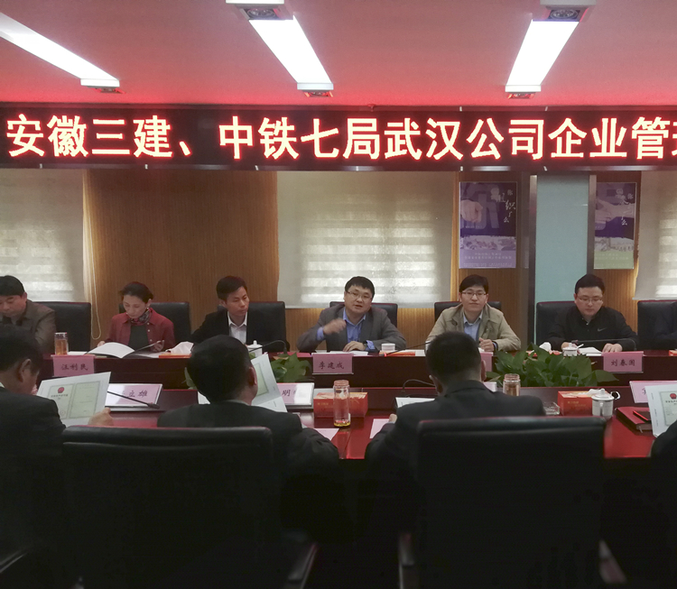7日上午,在中铁七局武汉公司总部召开了调研交流座谈会。会上双方围绕企业安全质量生产管理、专业公司发展、企业科技创新、市场投资开发、分包管理体系以及深化合作等话题进行了广泛交流。李建成在座谈中表示,中铁七局在铁路、市政及轨道领域有着丰富市场资源和技术、人才优势,是行业发展的排头兵,成功的发展经验值得安徽三建深入学习和借鉴。中铁七局武汉公司、安徽三建在合肥市轨道4号线4标段的合作是一个良好开端和一次成功实践。冯明辉表示,安徽三建在建筑施工、专业公司发展以及区域市场开拓上有着独特优势,希望双方能进一步加强合作,共同发展,形成合力。双方还就建立企业联盟事宜进行了深入探讨,均表示要进一步加强交流互鉴,充分发挥各自业态优势形成互补,在市政、轨道、建筑及产业化等业务版块方面,深化合作,共赢市场。